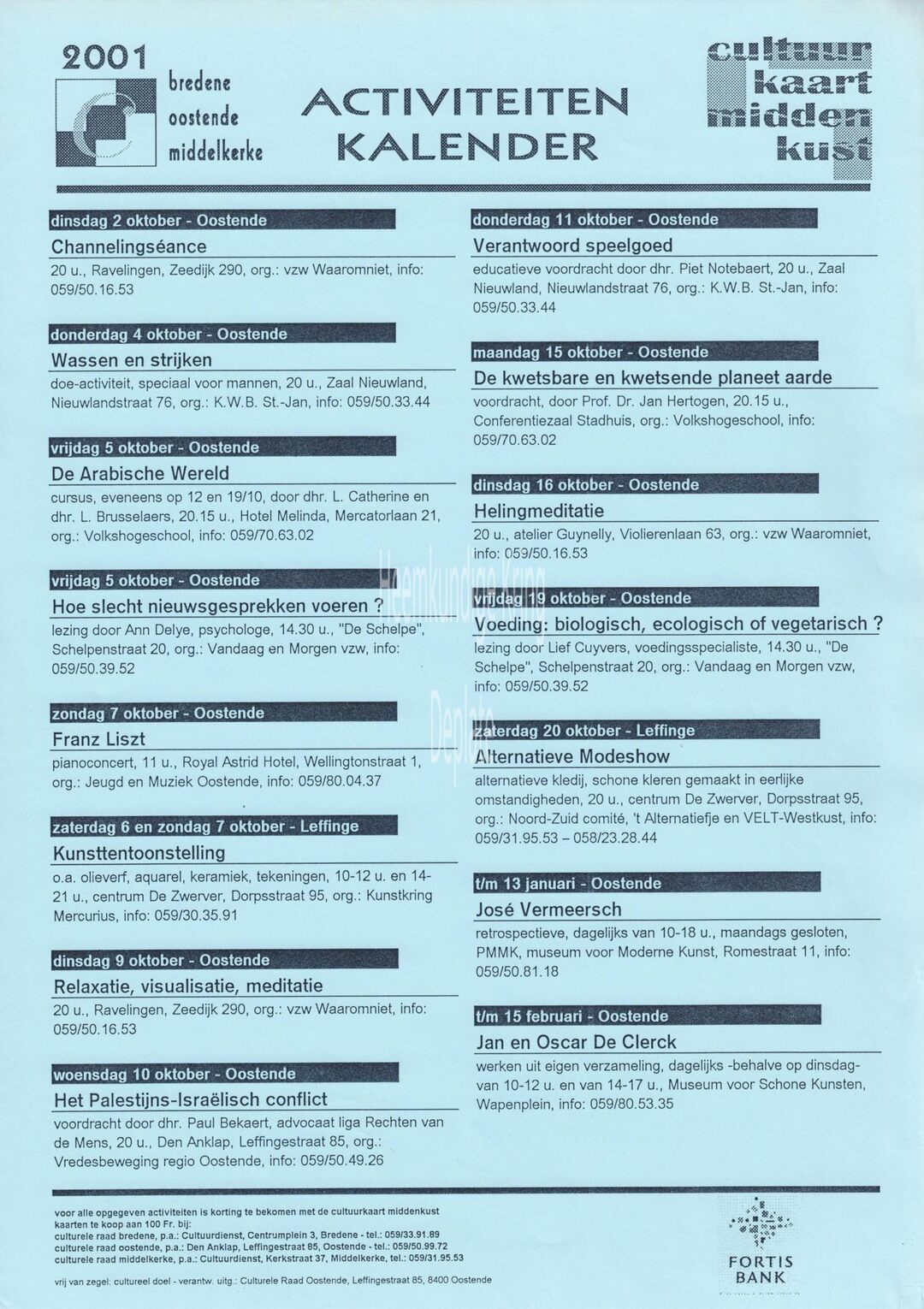 Formaat : 42 x 30 cm . - Activiteitenkalender Bredene-Oostende-Middelkerke oktober