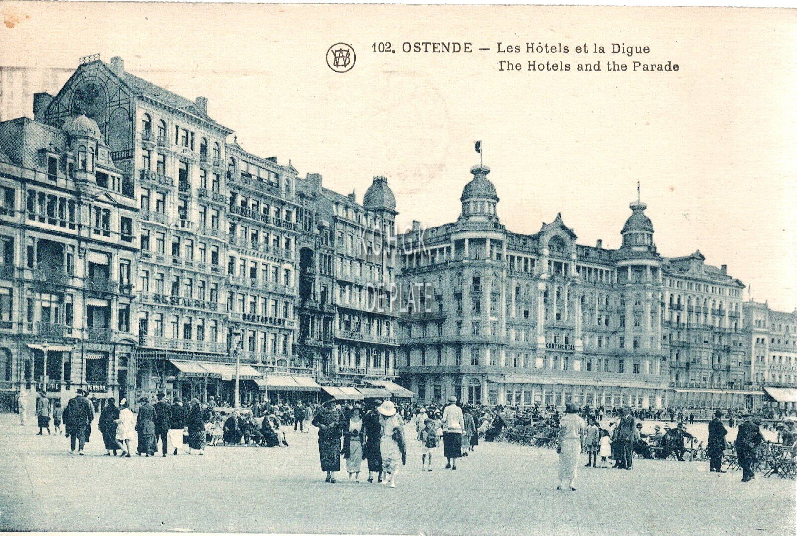 Walschaerts, N° 102, cliché F. Walschaerts, Bruxelles. - Ostende -Les Hôtels et la Digue. - The Hotels and the Parade.