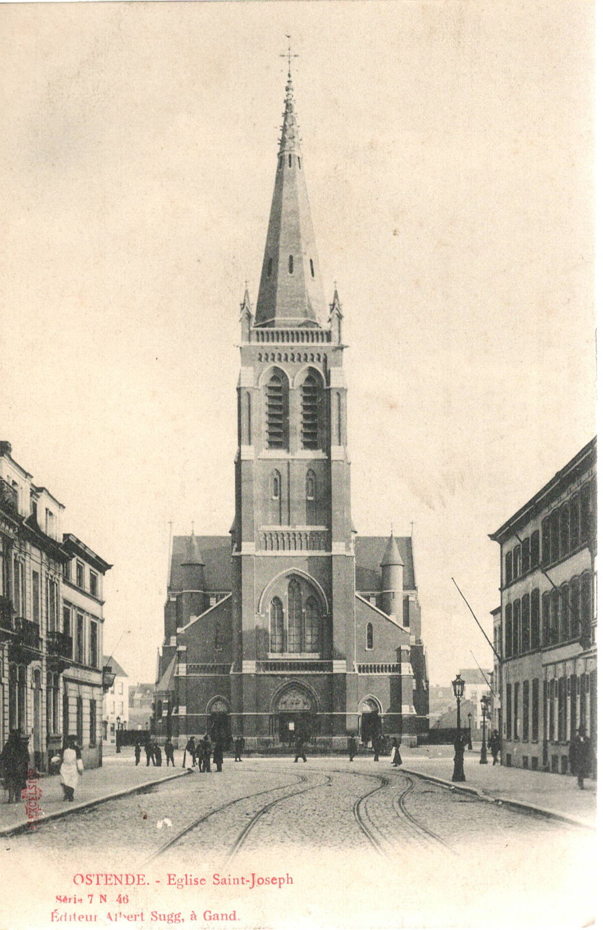 Editeur Albert Sugg, à Gand, Série 7 n° 46. - OSTENDE. - Eglise Saint-Joseph. gezien vanaf de Rogierlaan