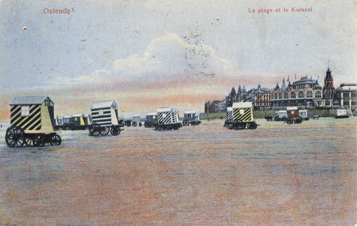 Grandes Galeries Belges, OSTENDE. N° 3110 a.. - Ostende - La plage et le Kursaal. Bijgekleurde kaart.
