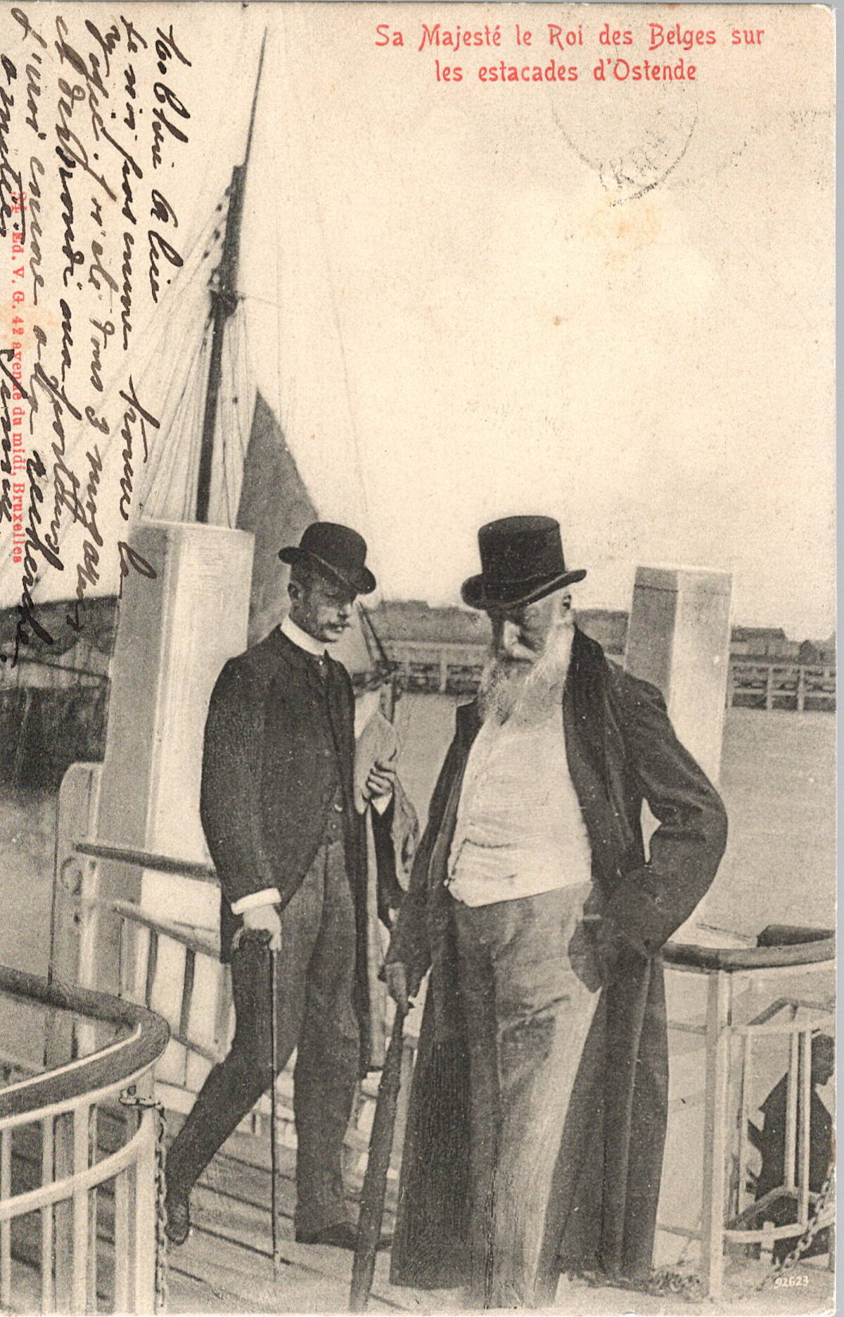 Edit. V.G. [=Victor Grégoire], 42, Avenue du Midi, Bruxelles, N° 34. - Sa Majesté Le Roi des Belges sur les estacades d'Ostende.