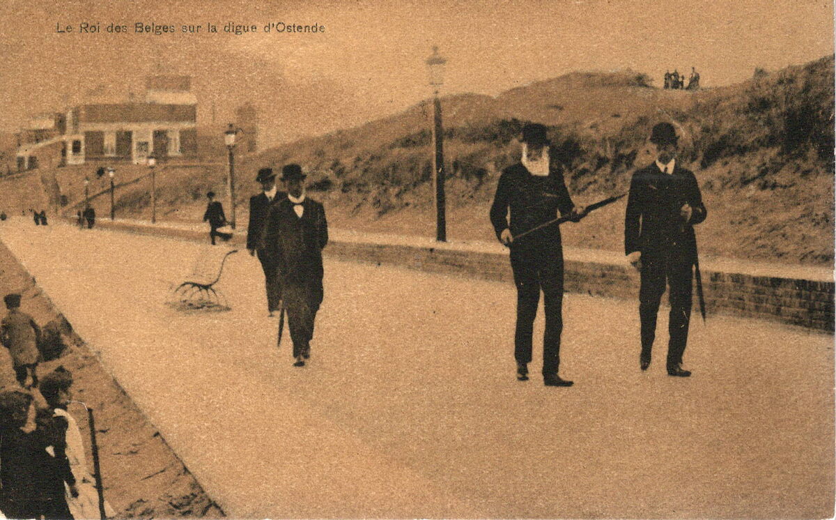 Le Roi des Belges sur la digue d'Ostende.