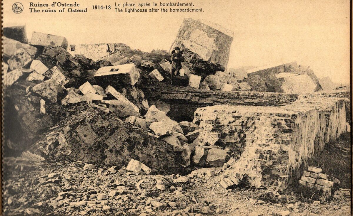 Nels, J. Revyn. - Le phare après le bombardement - The lighthouse after the bombardement