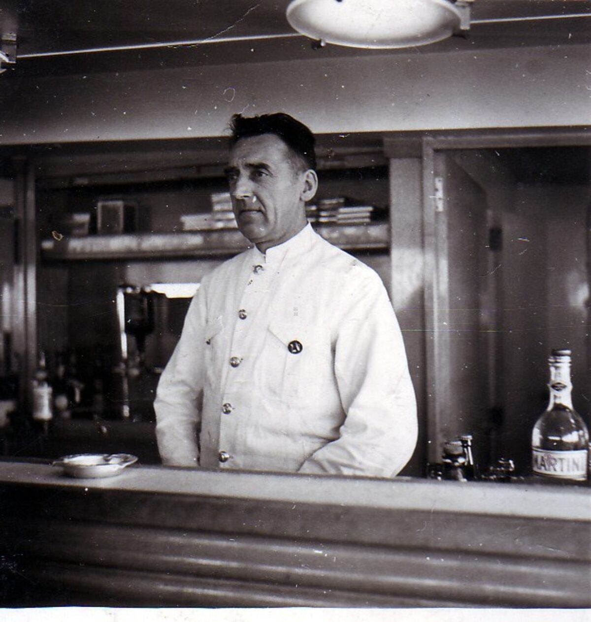 Formaat : 10 x 6,5 cm. - Cateringpersoneel aan boord van pakketboot Koning Albert of Prince Philippe