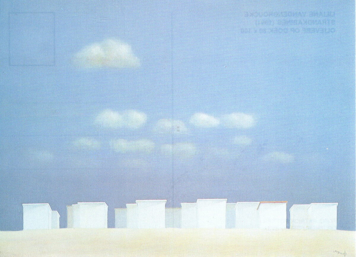 Afbeelding van olieverf op doek 80 x 100 - strandkabines door Liliane Vandenbroucke