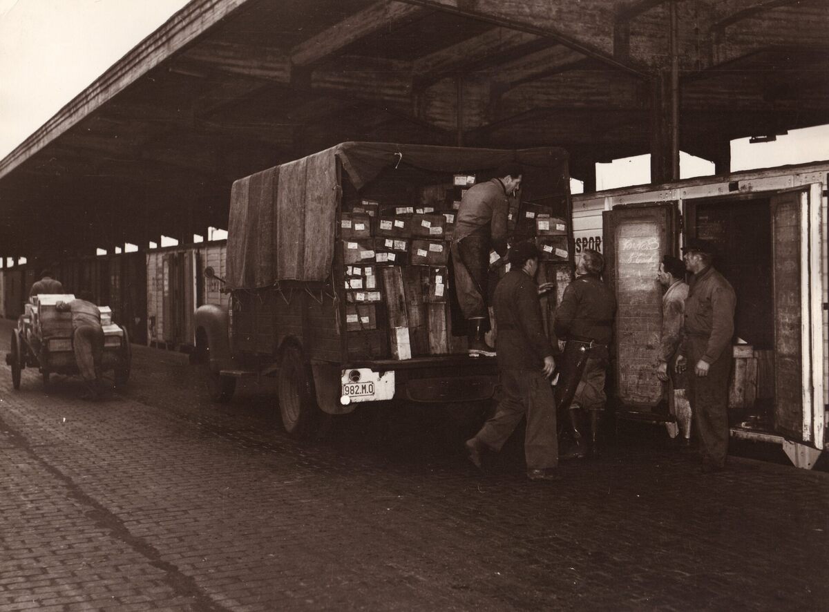 Formaat : 18 x 24 cm. - Het laden van de vistrein in de vismijn