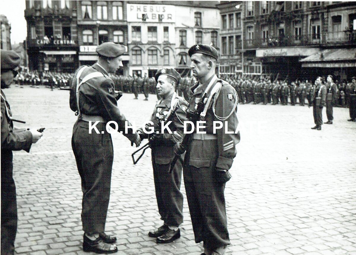 Foto : 13 x 18 cm. - Defilé van militairen en oudstrijders - Markt Brussel?