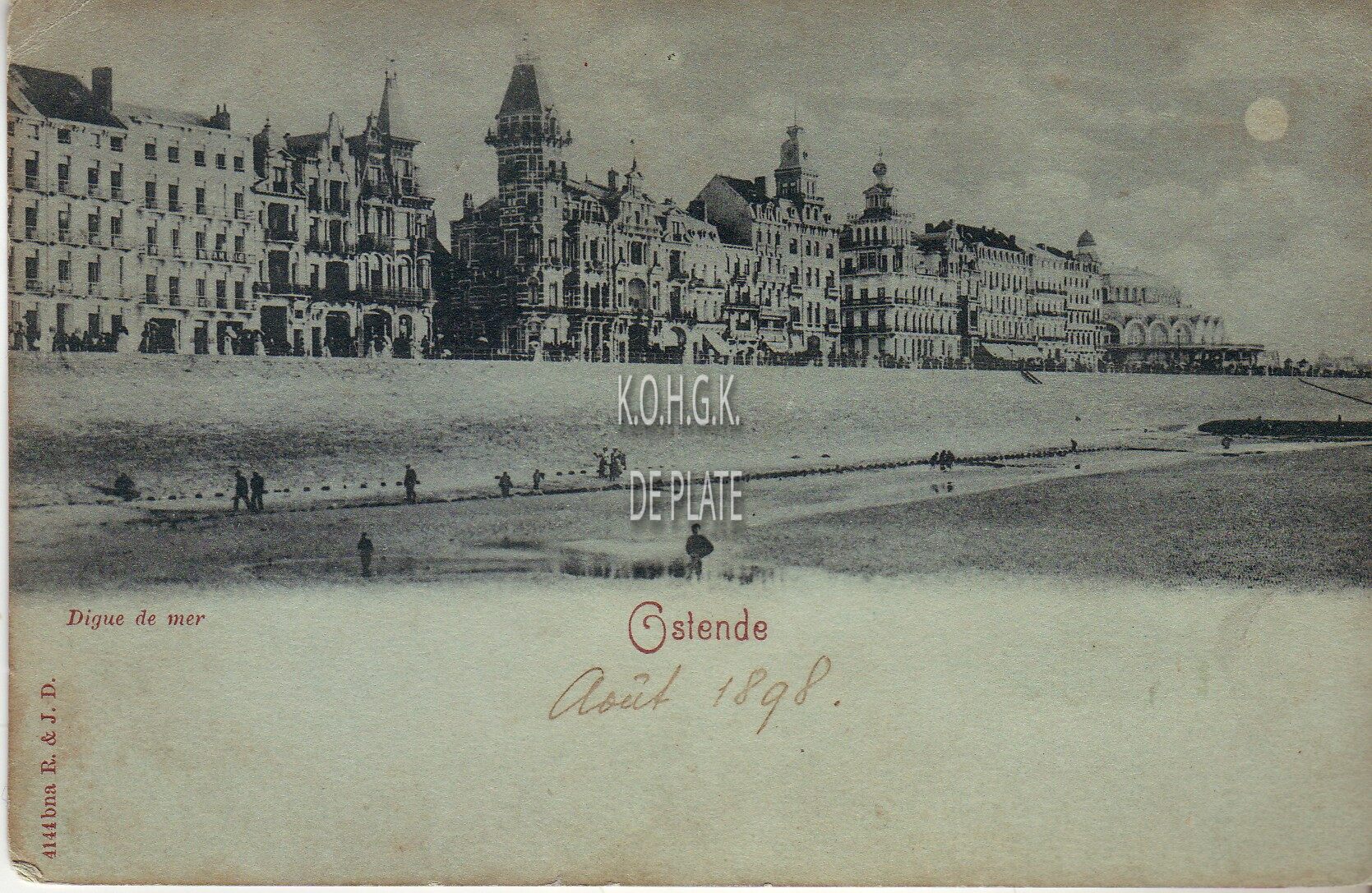 R. & J.D., 4144 bna. - Ostende - Digue de mer. De Zeedijk, gezien vanaf het Groot Strand, ten oosten van het tweede Kursaal.