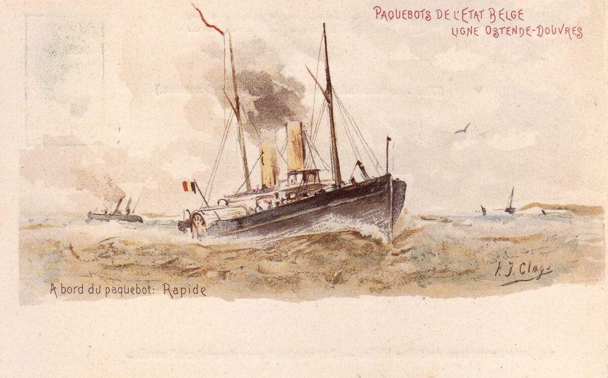 Pstwaardestuk van 5 cent. - Paquebots de l'Etat Belge. Ligne Ostende-Douvres. - A bord du paquebot : Rapide