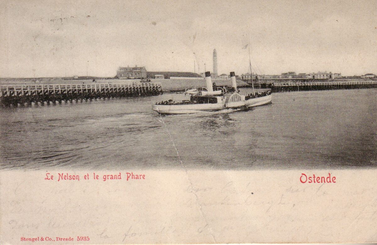 Stengel & C°, Dresde, N° 5935. - Oostende - Le Nelson et le grand Phare. - Op de achtergrond, het ooststaketsel en op de oosteroever de tweede vuurtoren.