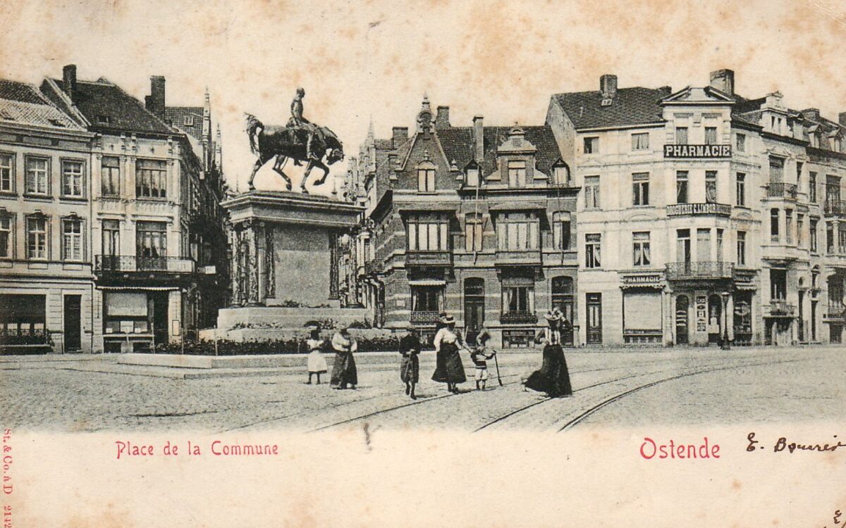Centraal, het Leopold I-monument en rechts apotheek Limbor