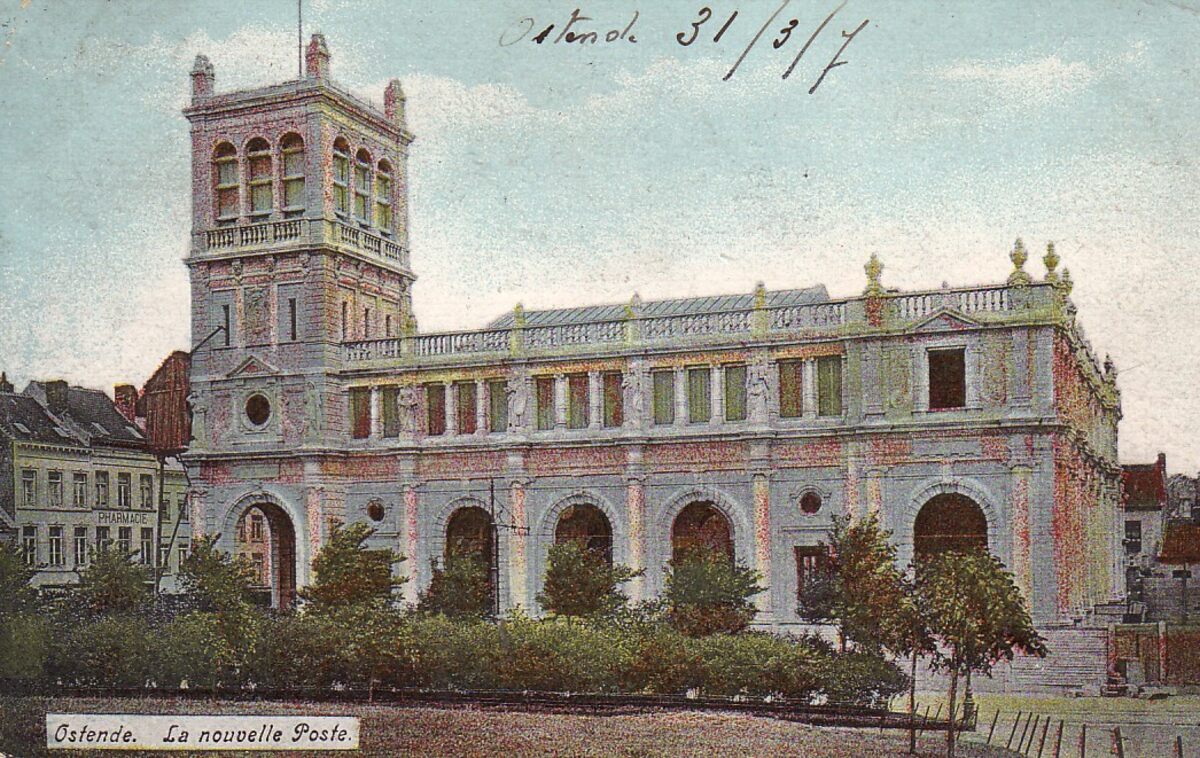 Ostende. - La nouvelle Poste. - Bijgekleurde kaart.