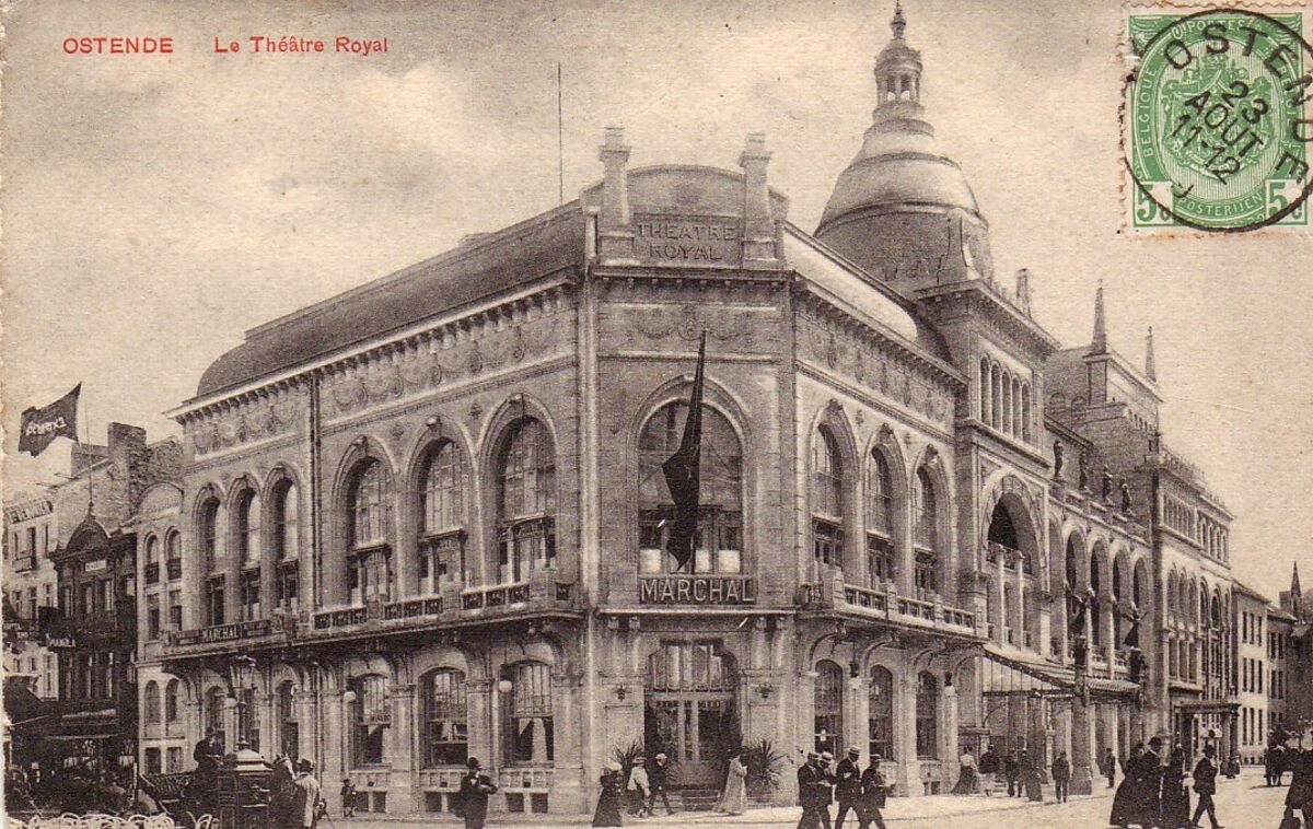 Victor Grégoire/V.G. - Ostende - Le Théâtre Royal. - De Koninklijke Schouwburg en Maison Marchal gelegen op de hoek van de Van Iseghemlaan en de Vlaanderenstraat.
