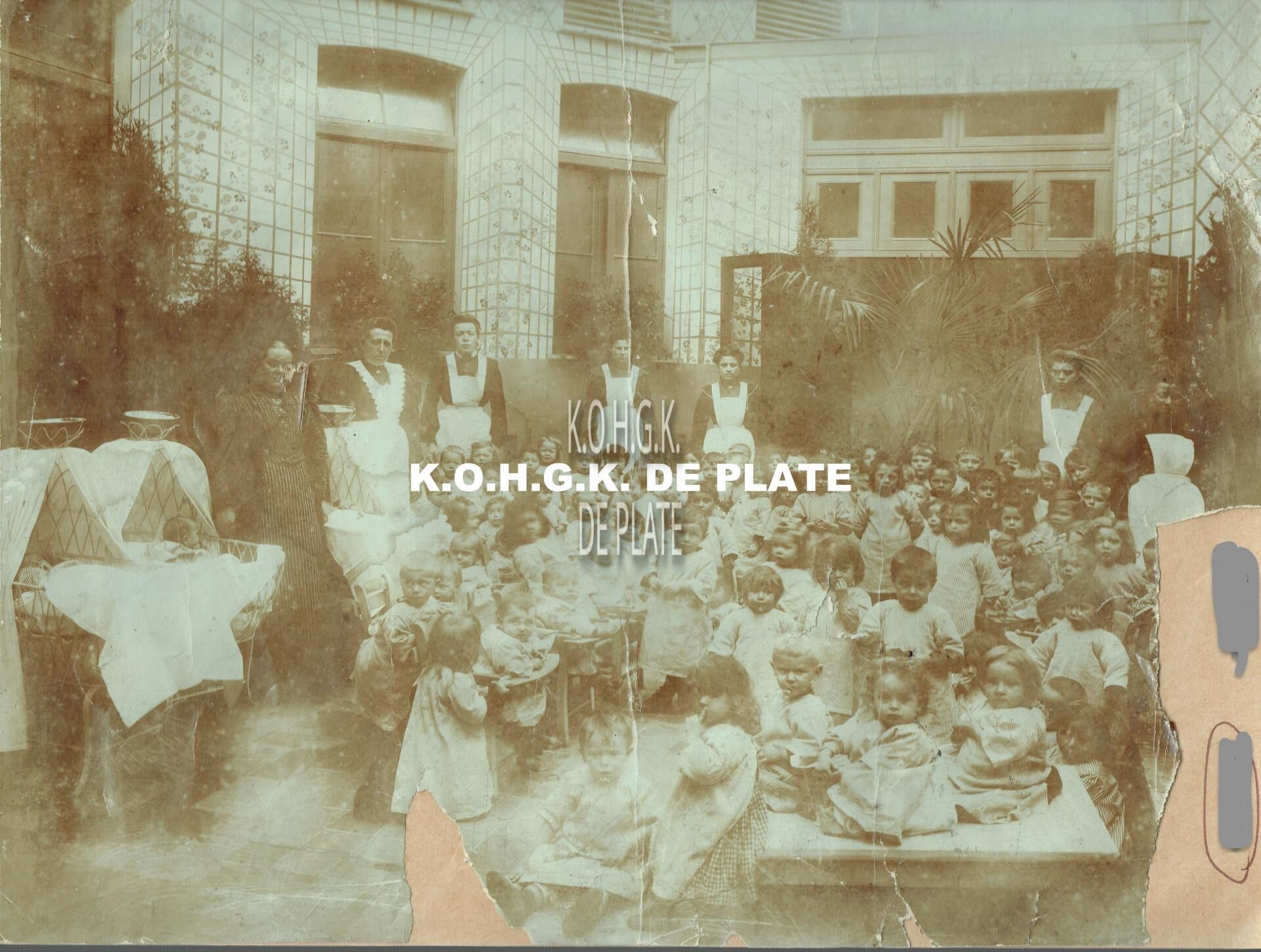 Formaat : 21 x 28 cm. - Foto, naar aanleiding van het 25 jarig bestaan van de kinderkribbe 1888-1913. - In 1891 liet Louis Delbouille in de Londenstraat (thans nr. 5) door architect Antoine Dujardin het huis "Fernand" bouwen voor het kinderdagverblijf "Crèche Louise-Marie"