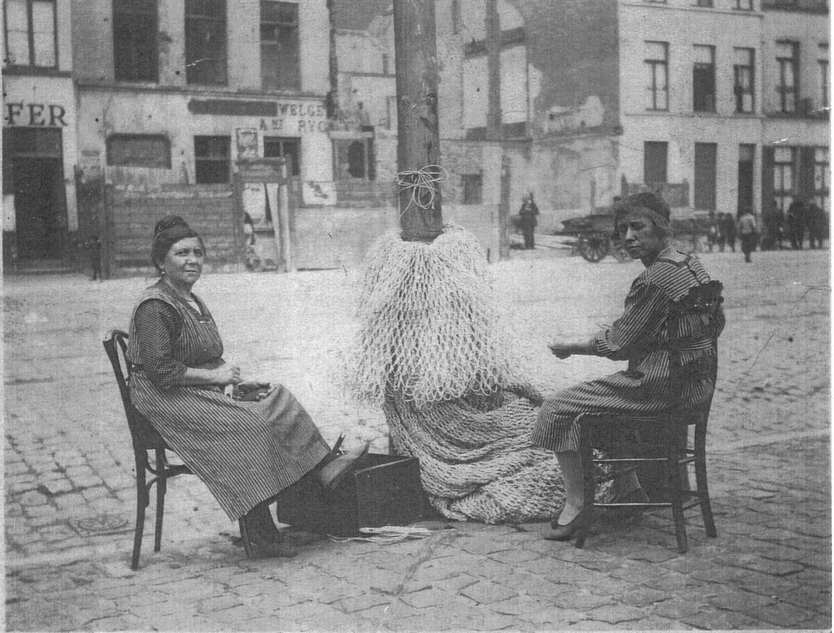Afdruk. - Links, Melanie Goetghebeur, echtgenoot Gustaaf Burke. Rechts, Paula Burke, echtgenoot Oscar Corveleyn . Illustratie in Map 023 B-48.