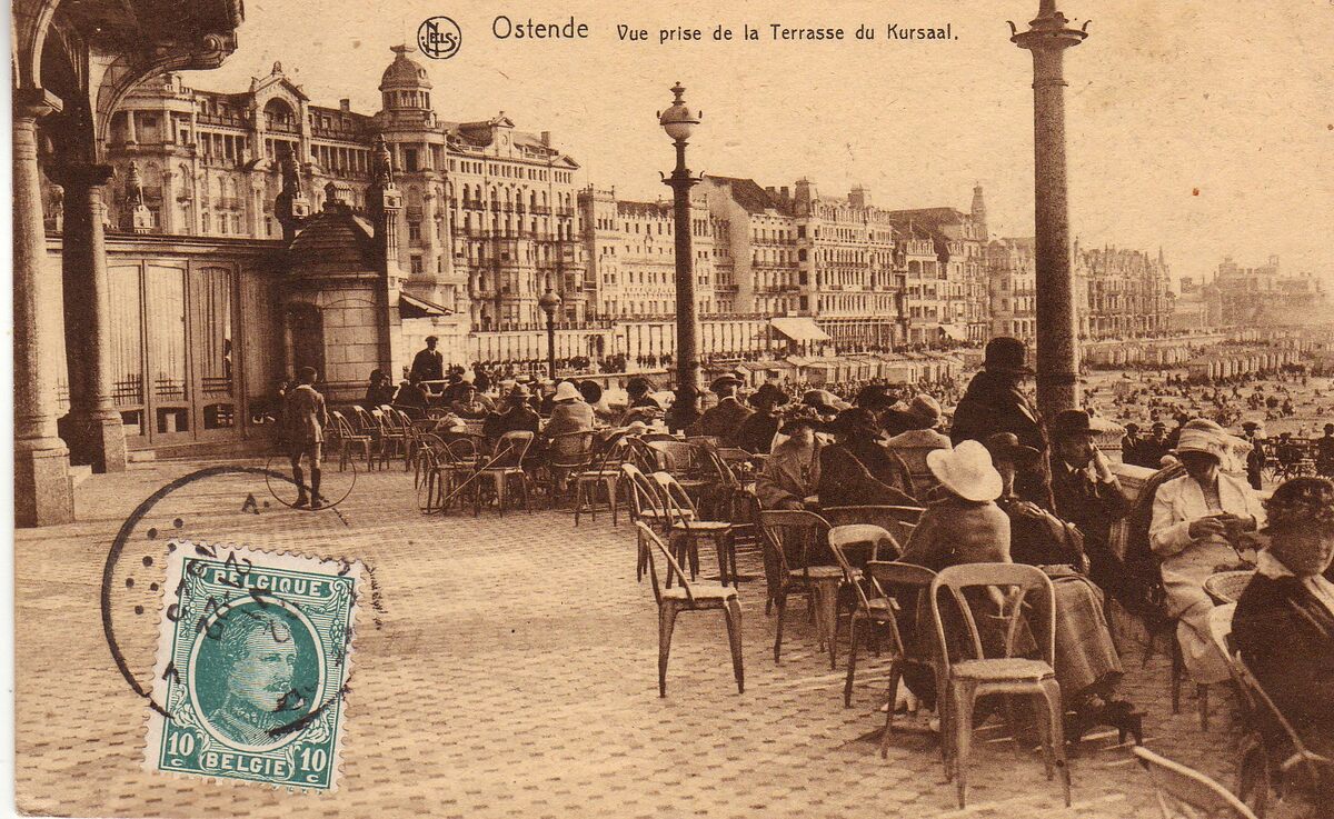 Zicht vanop het open terras van het derde Kursaal, gelegen langs de Zeedijk, richting het Koninklijk Chalet