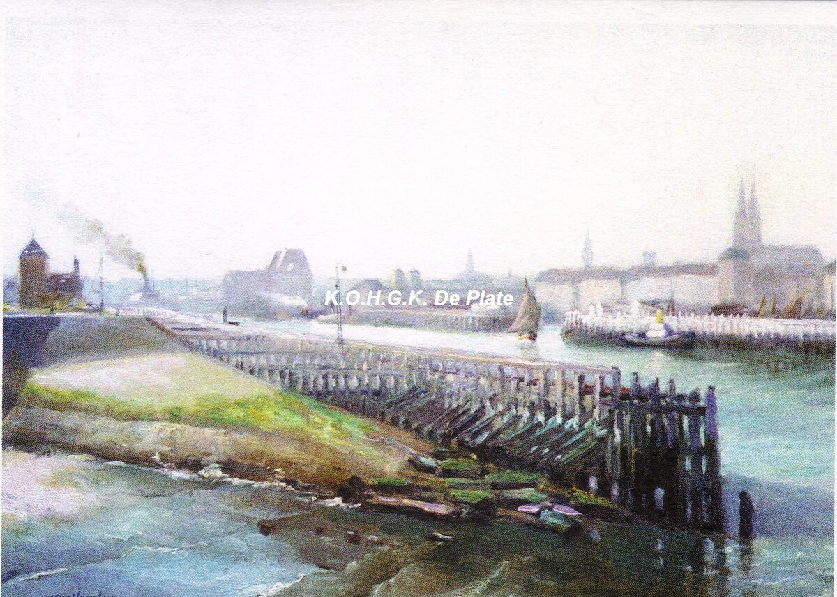 Wenskaart "Port d'Ostende" (1929) naar een schilderij van Alfred Verstraeten