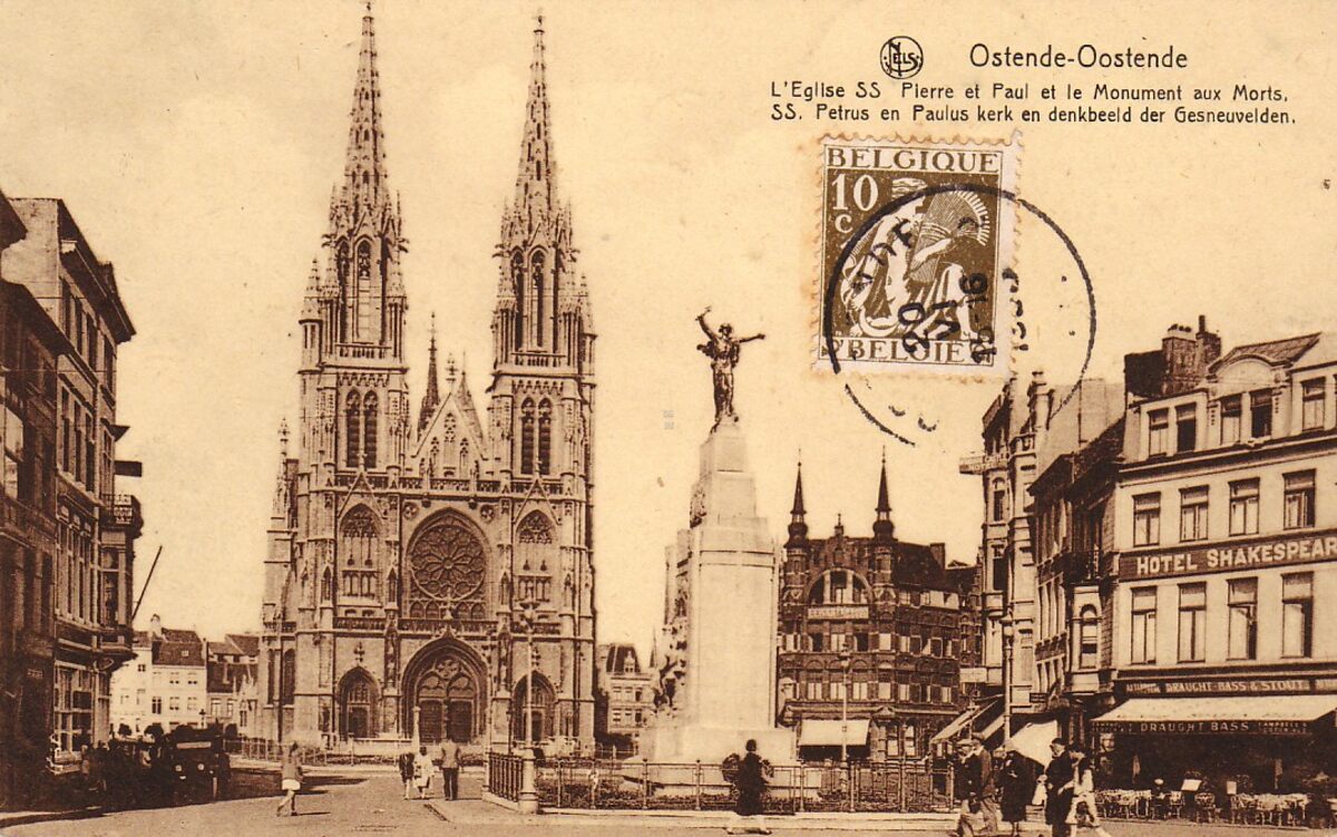 Nels 13, 74. - L'église S.S. Pierre et Paul et le Monument aux Morts. S.S. Petrus en Pauluskerk en monument der Gesneuvelden.