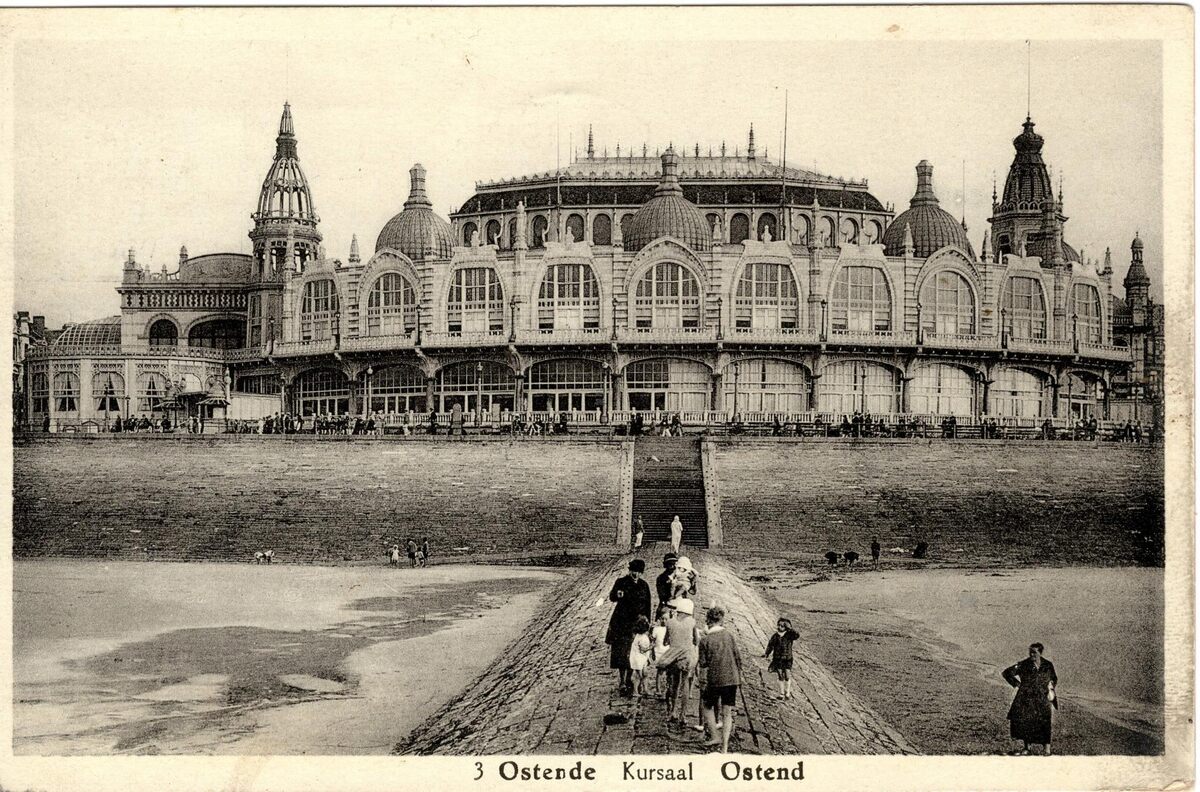 Albert, N° 3. - Ostende - Kursaal - Ostend. - De noordgevel van het derde Kursaal langs de Albert I-promenade, gezien vanop een golfbreker op het Groot Strand