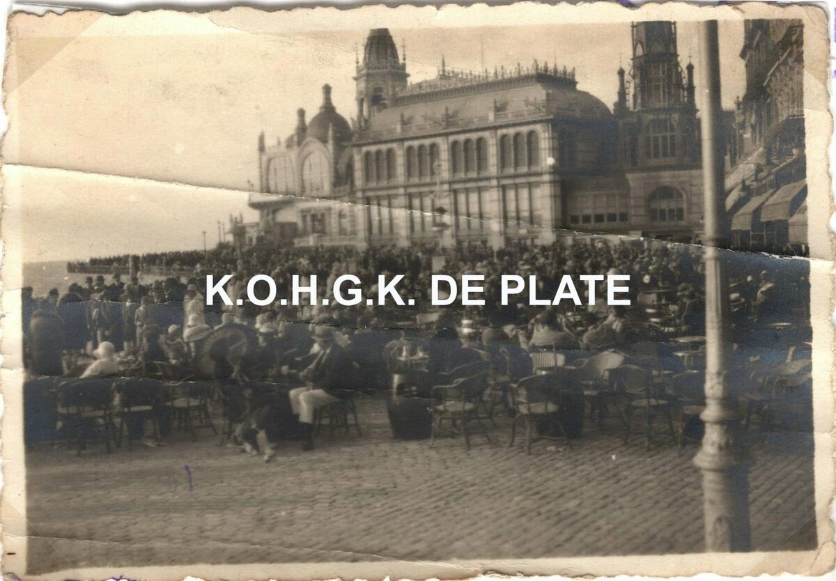 Formaat : 5,5 x 8,5 cm. - Genieten vanop een terras langs de Albert I-promenade. Op de achtergrond, de westgevel van het derde Kursaal