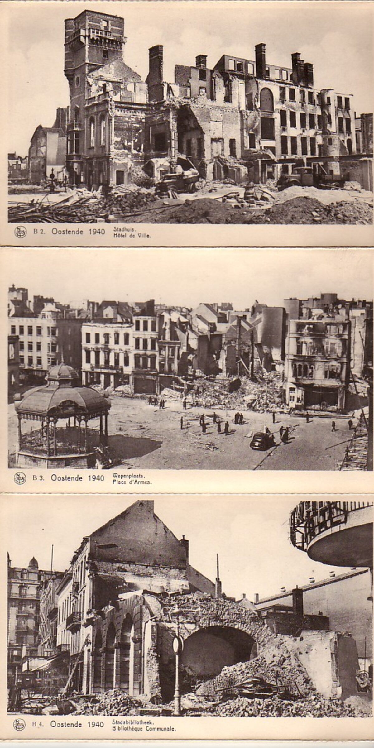Boekje met 10 postkaarten. Ruïnes Oostende 1940