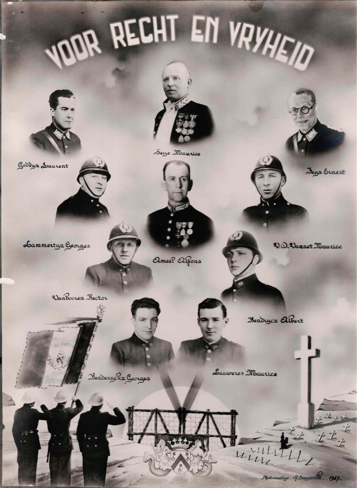 Fotomontage van de overleden en vermiste Oostendse politiemensen tijdens de Tweede Wereldoorlog.