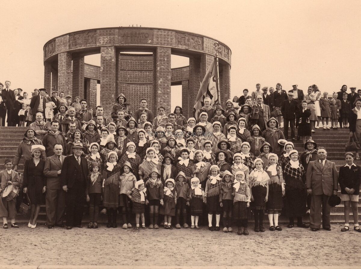Een folkloristische groep aan het monument van Albert I te Nieuwpoort.
