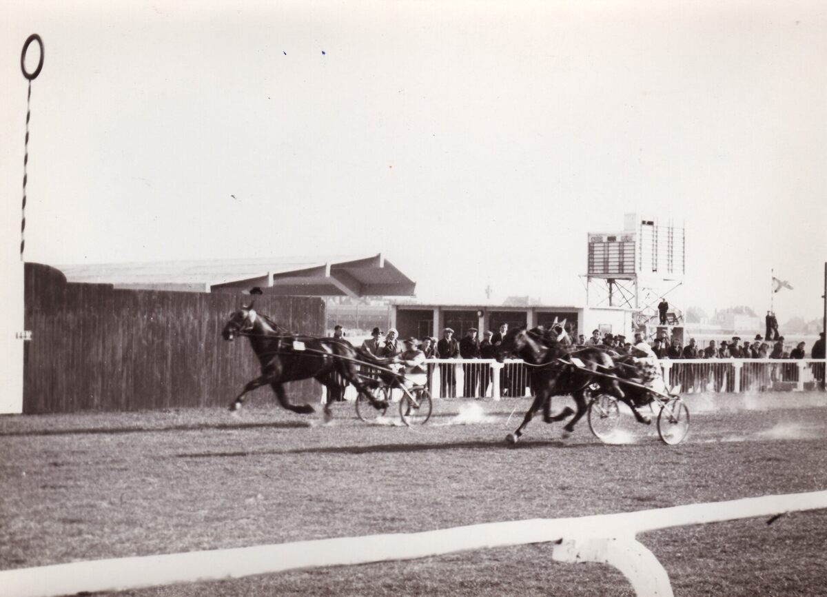 Formaat : 13 x 18 cm. - Drafkoers op de Wellingtonrenbaan in 1947