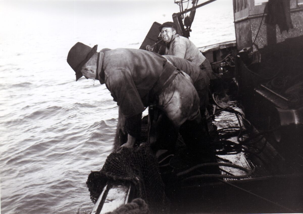 Foto z/w 18x13 +negatief. Op sprotvangst met de O.111 "Yvonne".