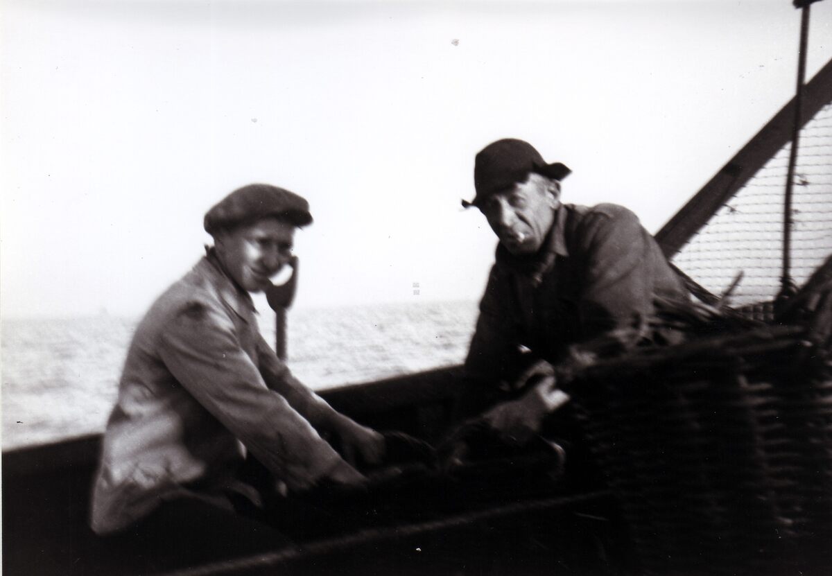 Foto z/w 18x13 +negatief. Op sprotvangst met de O.111 "Yvonne".