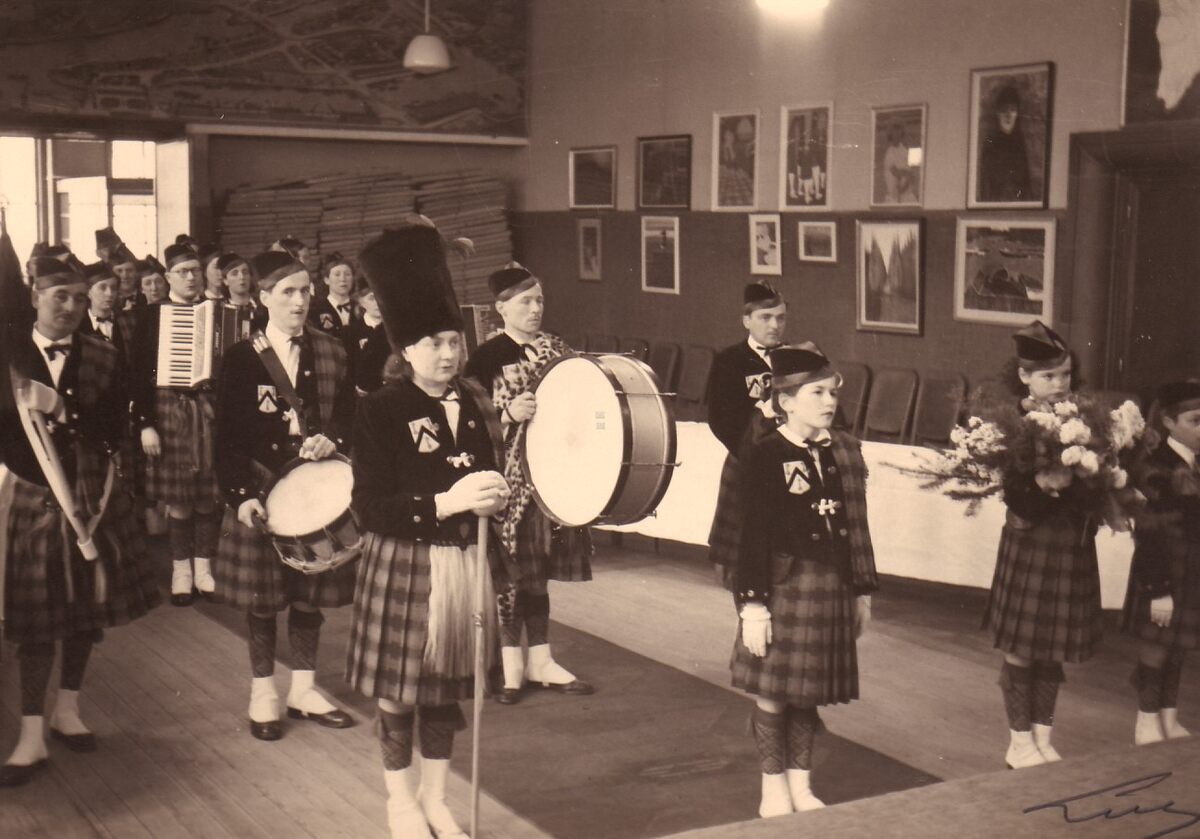 Ontvangst van de folklorische vereniging "De Oostendse Schotten" op het stadhuis (?).