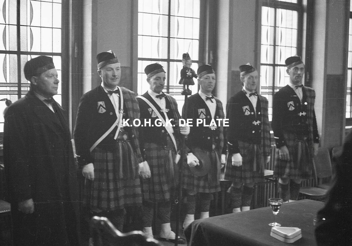 Negatief : 4 x 6,5 cm. - Inhuldiging van het vaandel van de whistmaatschappij "Ostendia" in het dienstdoend stadhuis (gerechtshof)