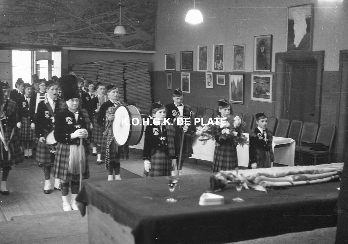 Negatief : 4 x 6,5 cm. - Inhuldiging van het vaandel van de whistmaatschappij "Ostendia" in het dienstdoend stadhuis (gerechtshof)