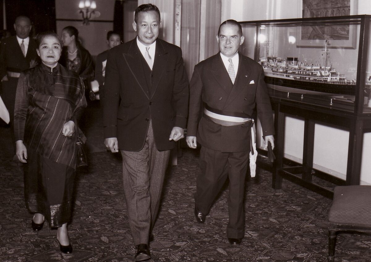 Ontvangst door burgemeester Adolf VAN GLABBEKE te Oostende van een prins van Laos en zijn echtgenote.