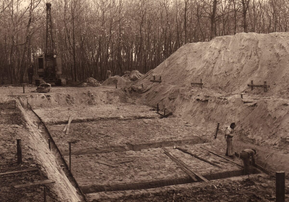 Formaat : 13 x 18 cm. - Werken in het Koningspark van de Koninklijke villa tijdens het slopen van de puinen na de Tweede Wereldoorlog.