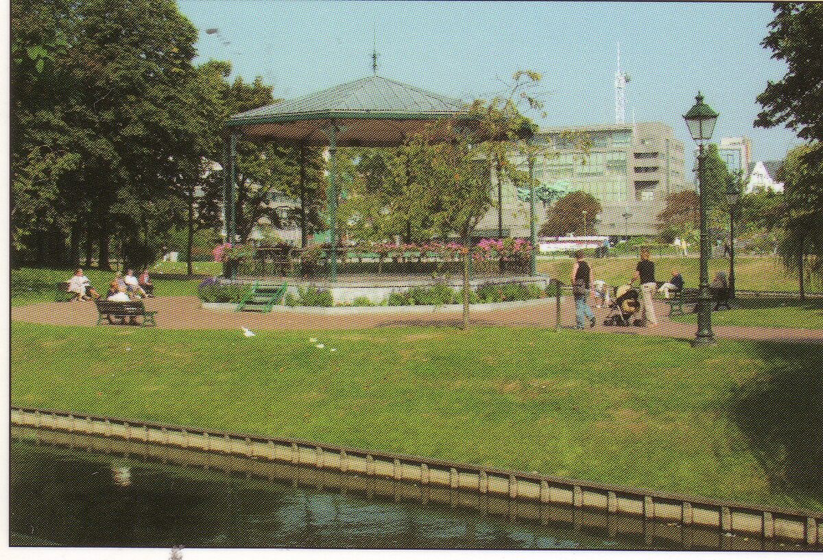 Tropic T 427. - Ostende oender woater 1953. - Leopoldpark en kiosk. - Inventaris 2020/1291 fotoarchief D2 album 3. Herkomst Simoens.