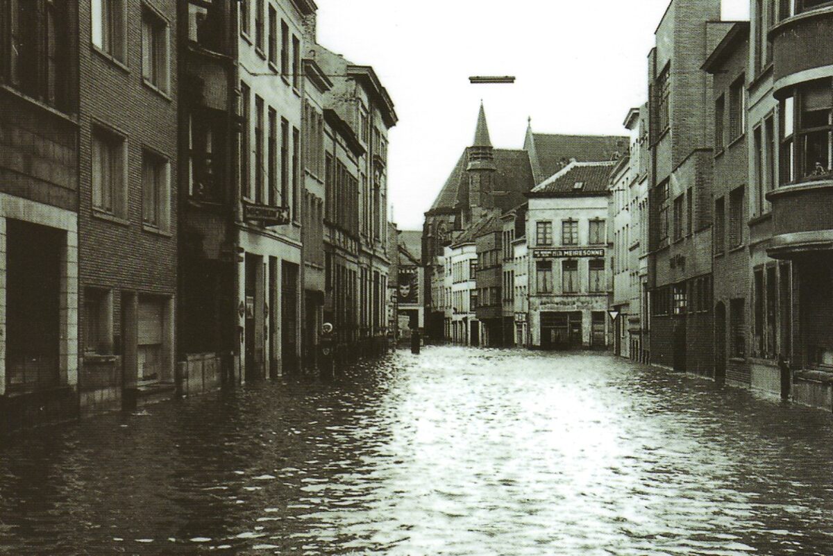 Tropic T 429. - Ostende oender woater 1953. - De Aartshertoginnestraat gezien vanaf de Euphrosina Beernaertstraat richting de Jozef II-straat.