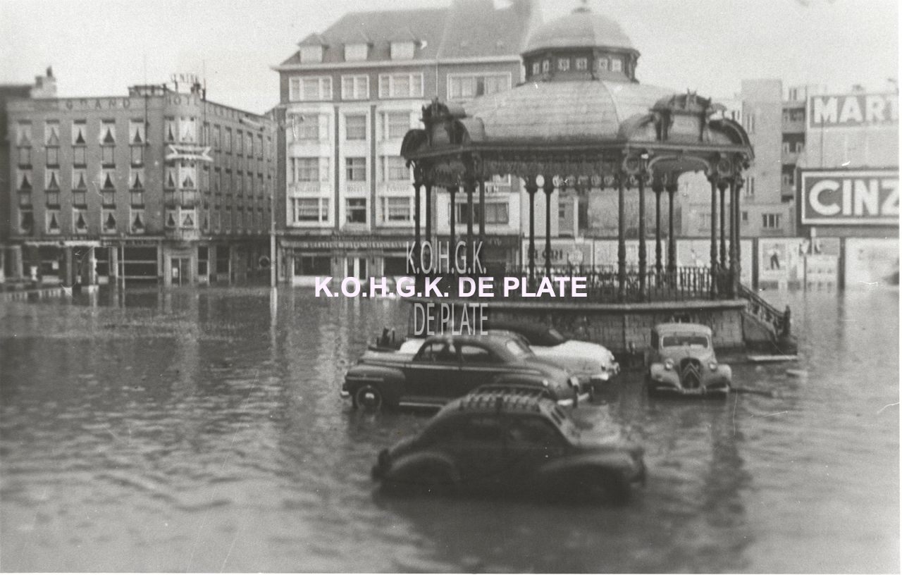 Formaat : 15,5 x 24. - Het Wapenplein, met in het midden, de muziekkiosk. Op de hoek met de Louisa- en Brabantstraat, het " Grand Hotel Central"