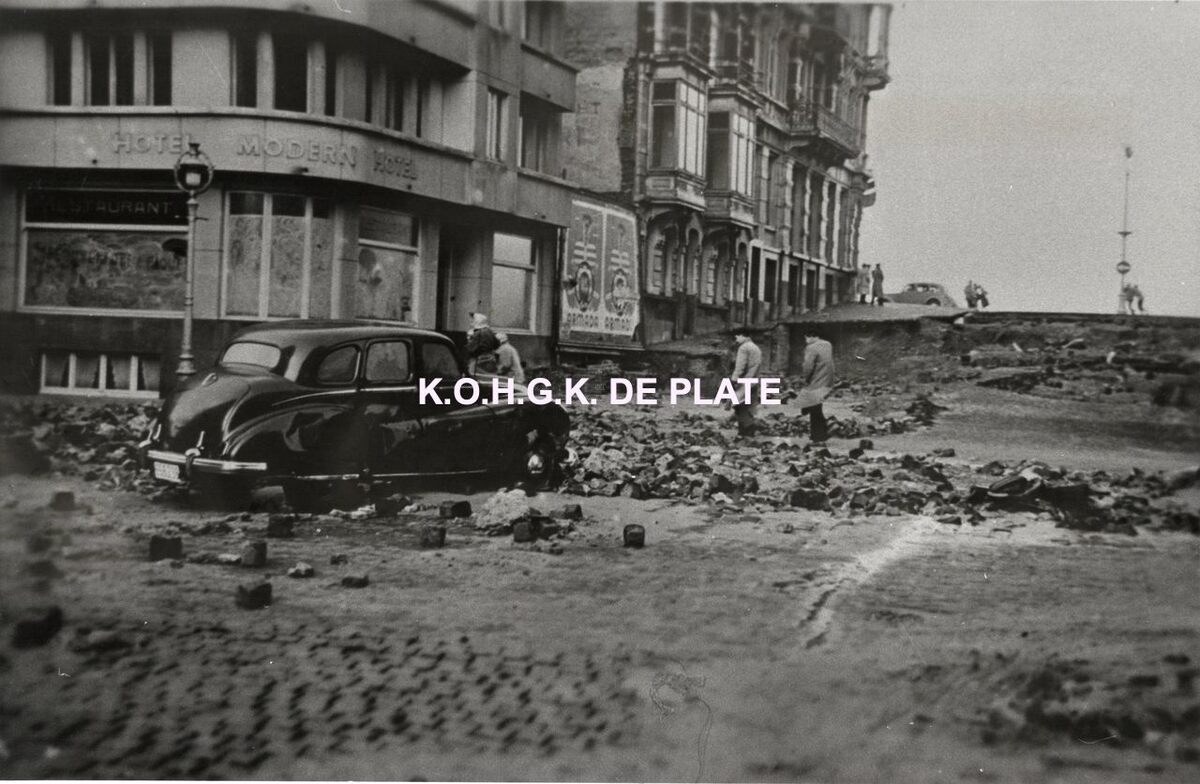 Formaat : 15,5 x 23 cm. - De hoek van de Kapucijnenstraat en de Van Iseghemlaan. Op de hoek, het "Modern Hotel".
