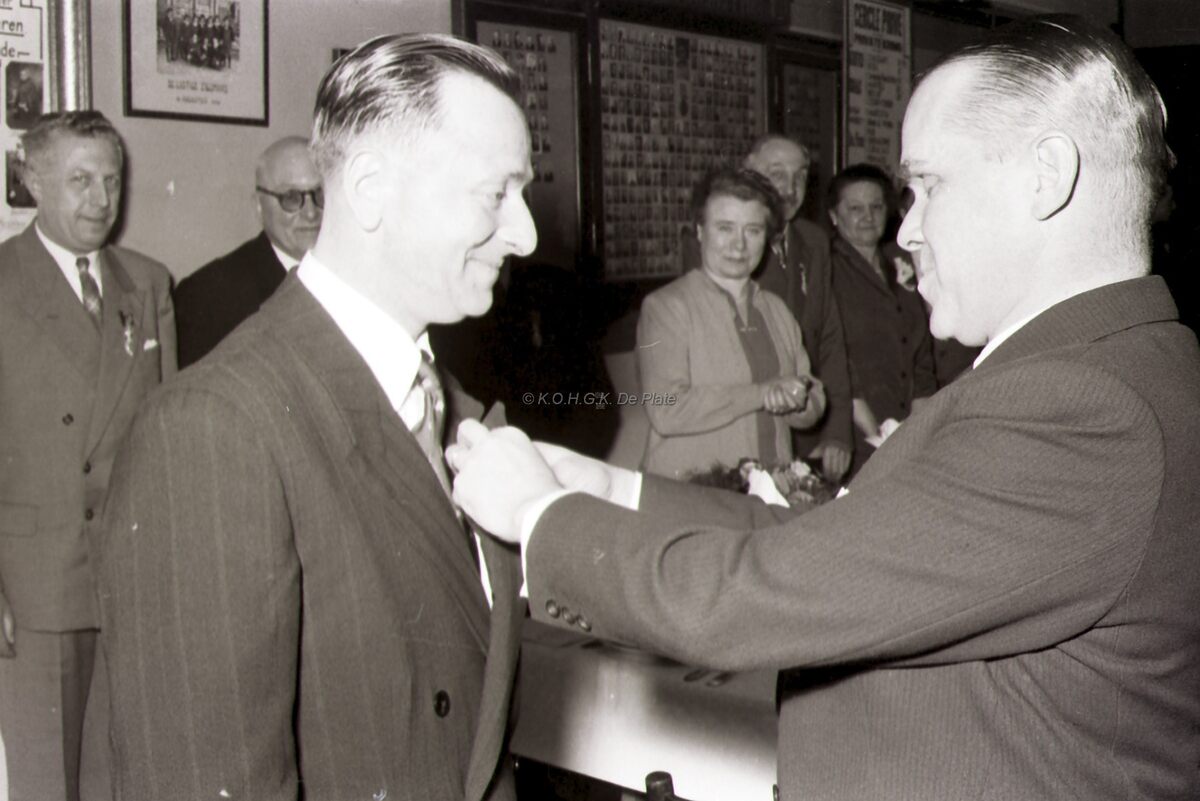 Een oudstrijder gedecoreerd door burgemeester Adolf VAN GLABBEKE.