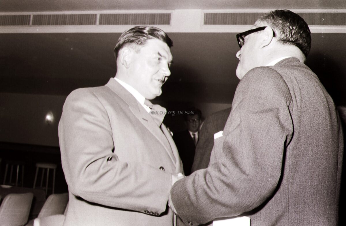 Een verdienstelijk lid van de vereniging van busuitbaters wordt gedecoreerd op hun congres.