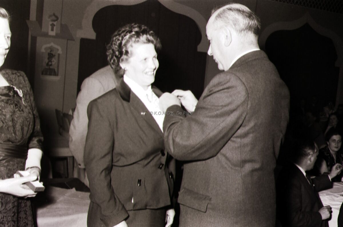 Schepen Kamiel DEHOUCK vereremerkt een dame op het congres van busuitbaters.