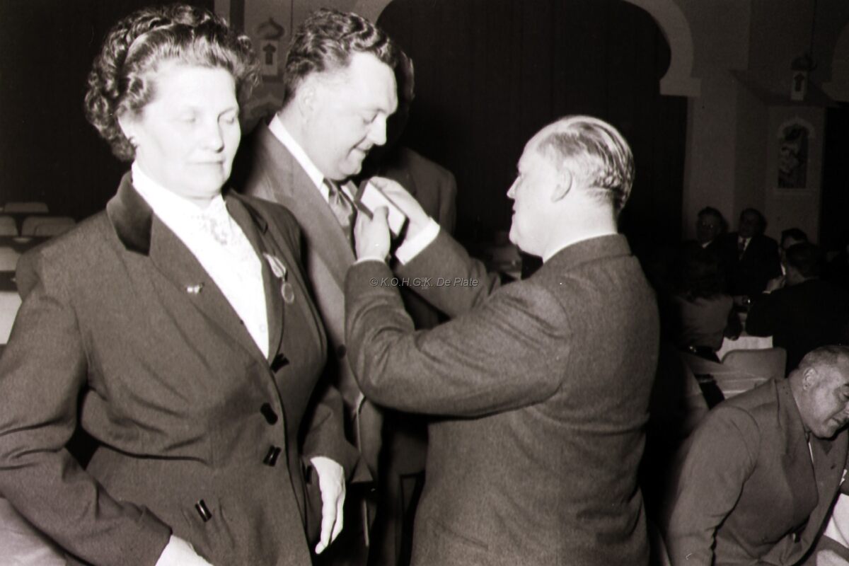 Een verdienstelijk caruitbater wordt gedecoreerd op hun congres.
