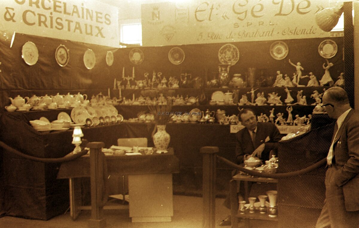 De stand van de handelszaak "Ets. GéDé", Brabantstraat 5 Oostende, op de handelsbeurs 1954 te Brussel.