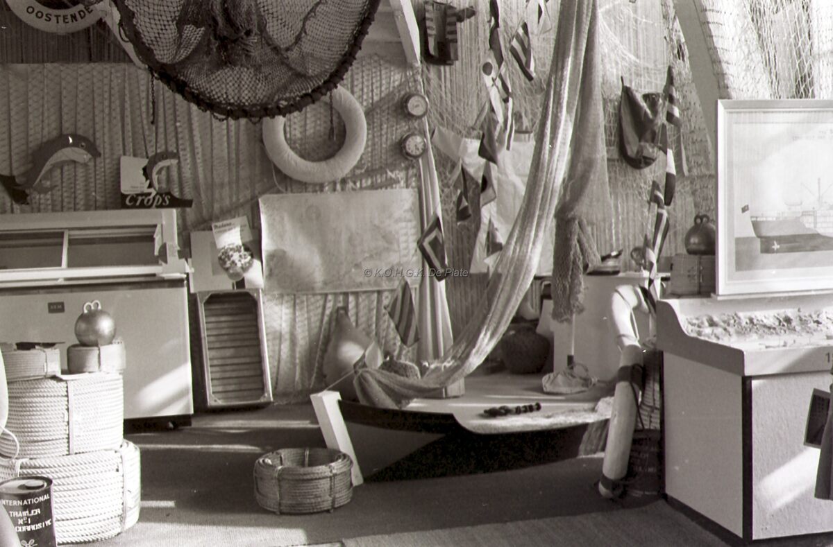 De stand van touwfabriek Ostend Stores and Ropeworks en van zeevisgroothandel Crop's op de Brussels handelsbeurs 1954.