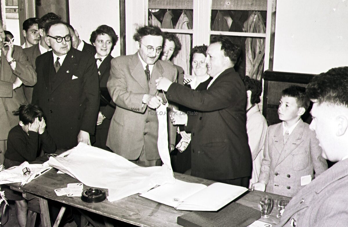 Prijsdeling door burgemeester August PLOVIE na een schaaktornooi op Sas slijkens.