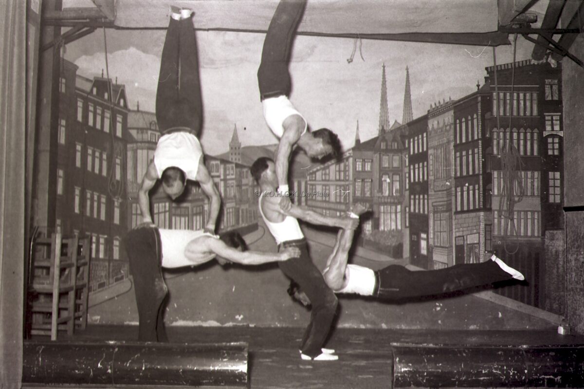 Optreden van een turnvereniging (in een Bredens zaaltje ?).