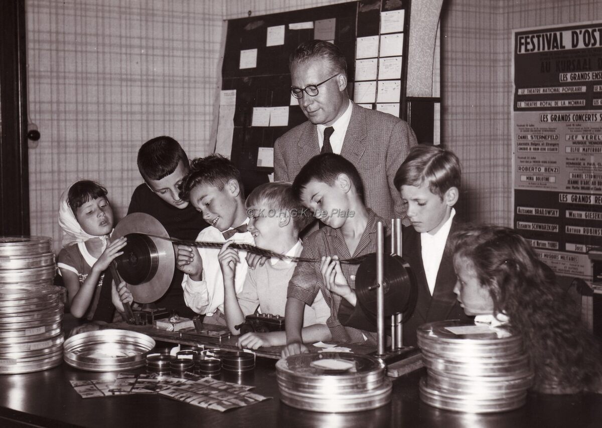 Uit 1955 : De film "De schat van Oostende" = "Le trésor d'Ostende". Derde van links Jacques Ghaye