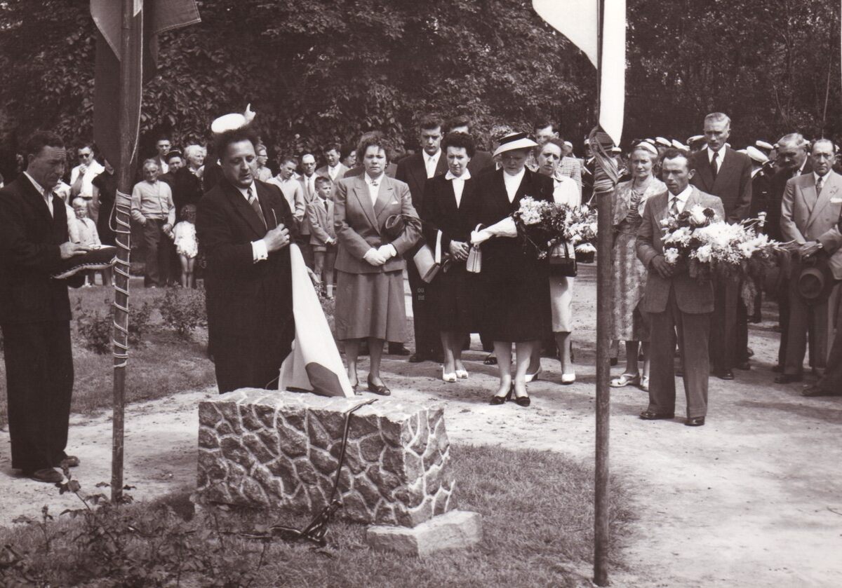 Burgemeester August PLOVIE van Bredene onthult een gedenksteen voor schepen Ramakers (1902-1953)