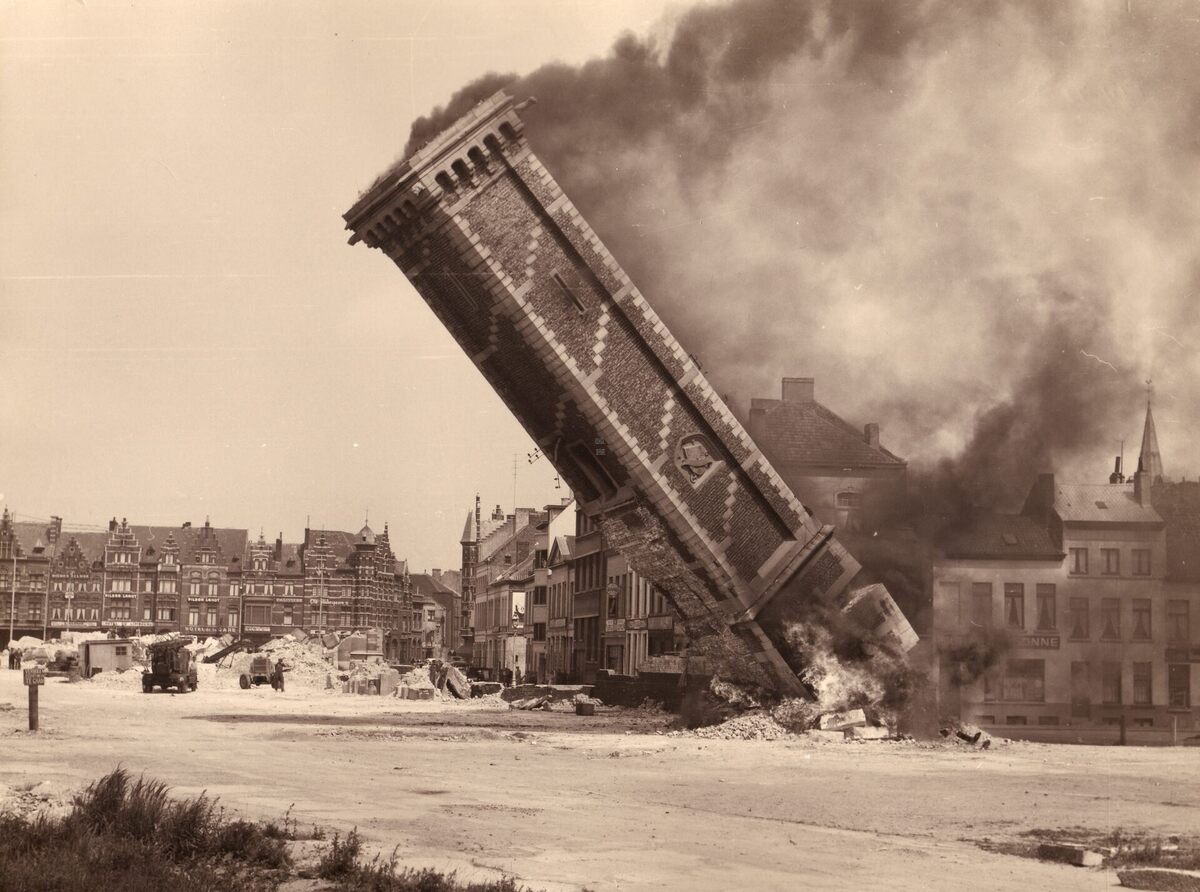 Formaat : 18 c 24 cm. - De laatste toren van het station gaat neer.